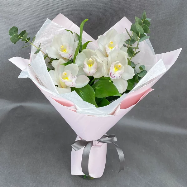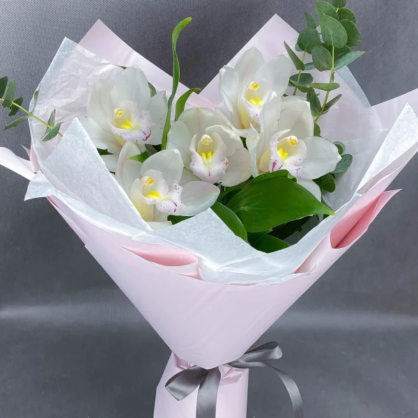 Утопая в нежности – букет с белыми орхидеями